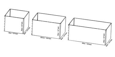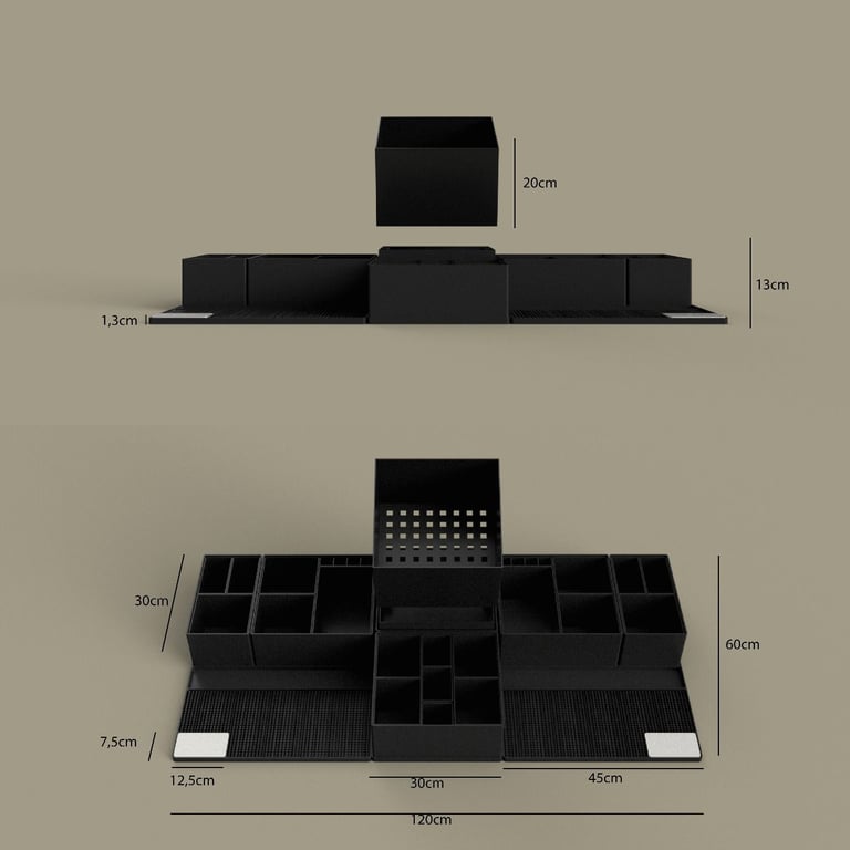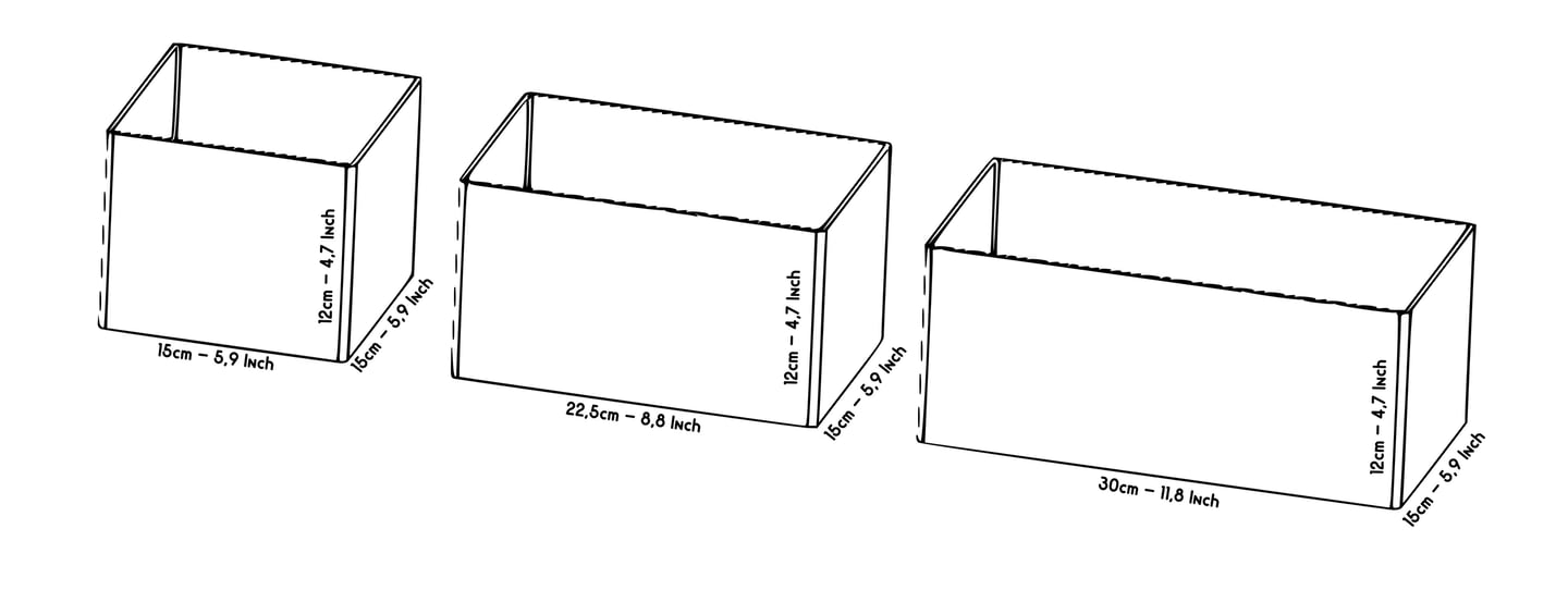 All OrdoBox modules have the same height: 12 cm They only differ in width × depth (the base size you see from above).