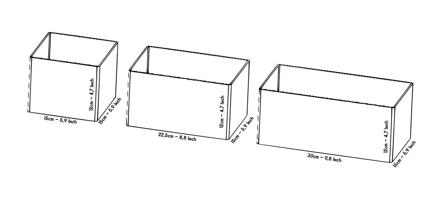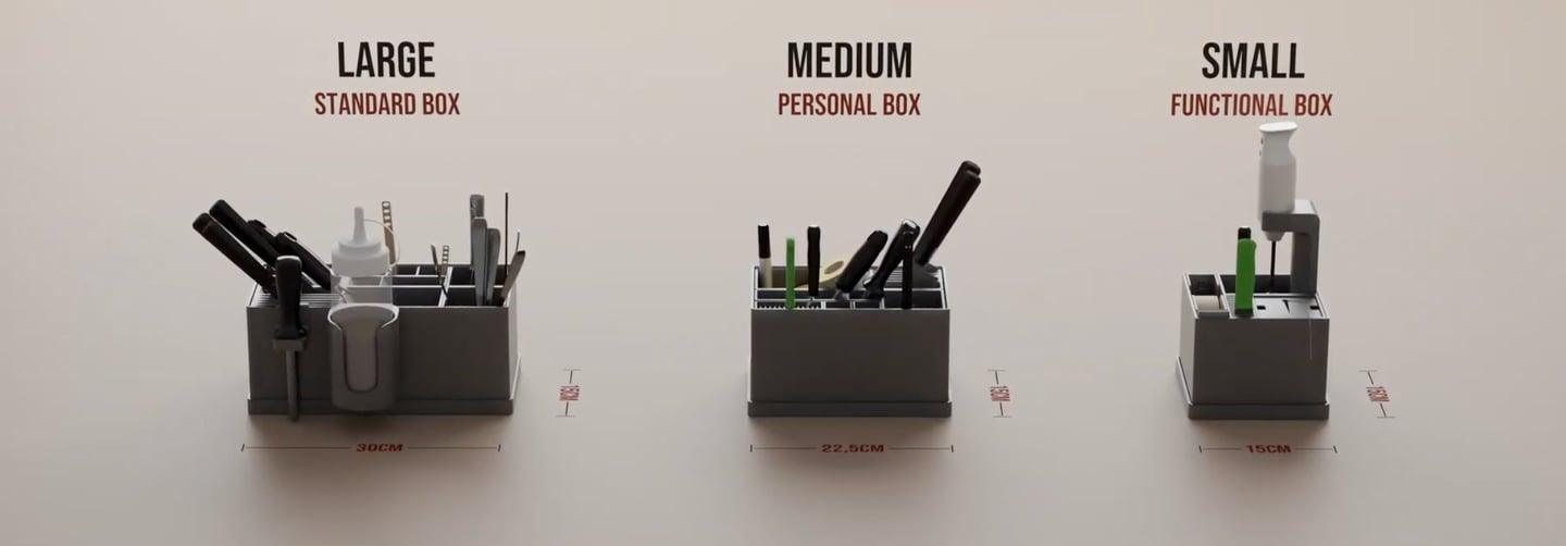 All OrdoBox modules have the same height: 12 cm They only differ in width × depth (the base size you see from above).